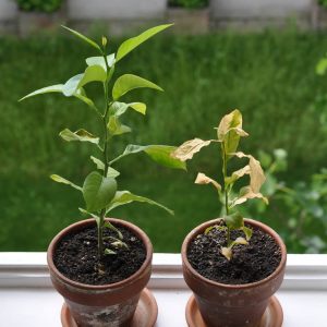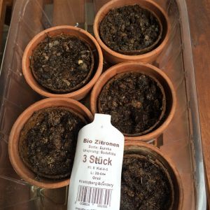Verwendet jedenfalls den Kern einer Bio-Zitrone, ausschließlich Bio-Zitruserde und Bio-Zitrusdünger. Ich habe 5 Kerne eingepflanzt, 3 davon haben gekeimt, 2 davon habe ich weiter wachsen lassen. Ihr könnt auch nur 1 Kern pflanzen, müsst aber mit der Möglichkeit rechnen, dass er gar nicht keimt. Die Keimdauer beträgt zumindest 4 Wochen, kann aber – je nach Bedingungen – auch länger dauern. Habt also Geduld!
