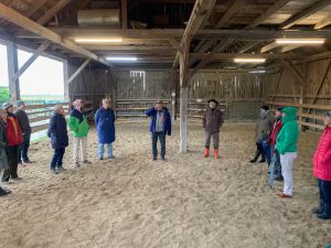 Zuerst wurde uns die Wurmkompost-Anlage ausführlich erklärt, anschließend sind wir in die kleine Reithalle nebenan übersiedelt und haben ein bisschen über die Geschichte des Bauernhofes erfahren.