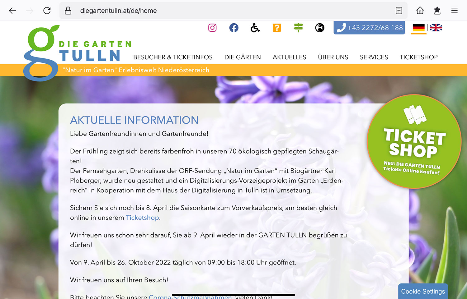 . Für alle in Wien, Niederösterreich und Durchreisenden: Ab 9. April ist die 'Garten Tulln' wieder bis 26. Oktober geöffnet.